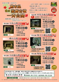 2025.09.26掲載 イベント情報 熊本県・菊文研文化財講座第5回 「再(彩・差異)発見! 装飾古墳の世界」最終回 「装飾古墳の伝播と開花 ~福岡県の事例から~ 」 たくさんのご参加ありがとうございました。 期間:令和7年10月19日から令和8年2月22日まで