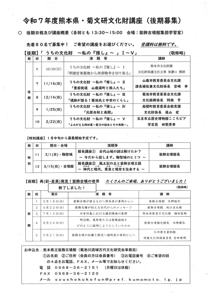 熊本県立装飾古墳館では、菊池川流域古代文化研究会(菊文研)との共催で、文化財講座を実施中です。