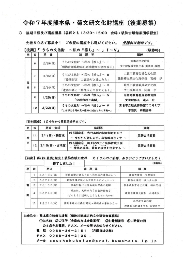 熊本県立装飾古墳館では、菊池川流域古代文化研究会(菊文研)との共催で、文化財講座を実施中です。
