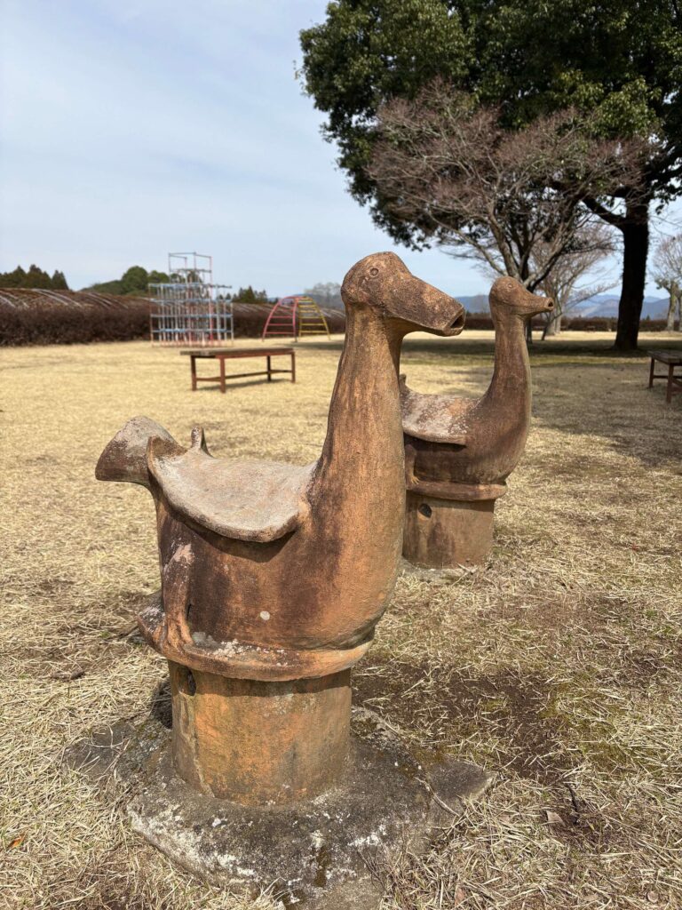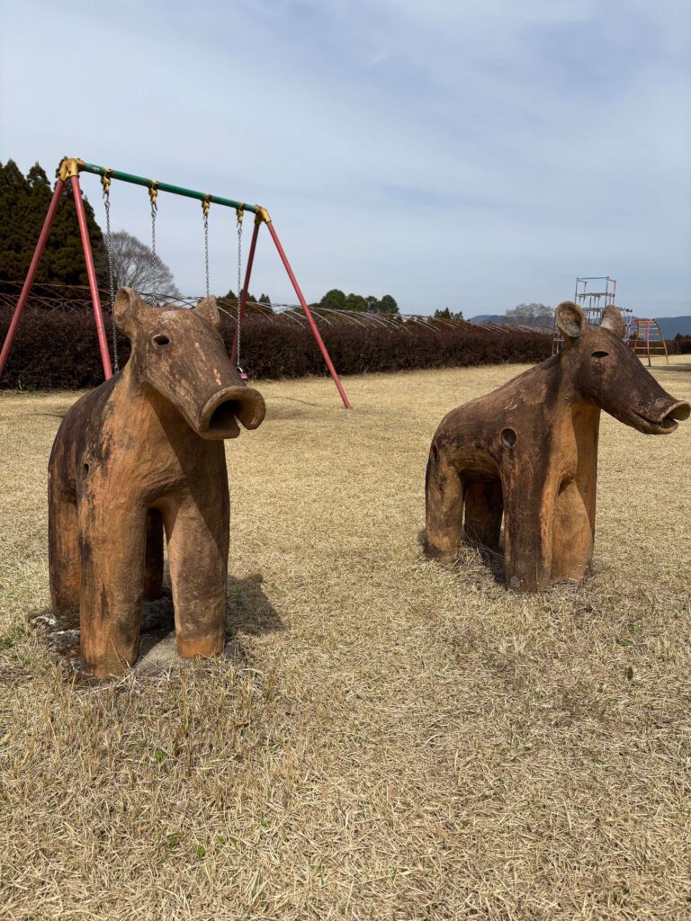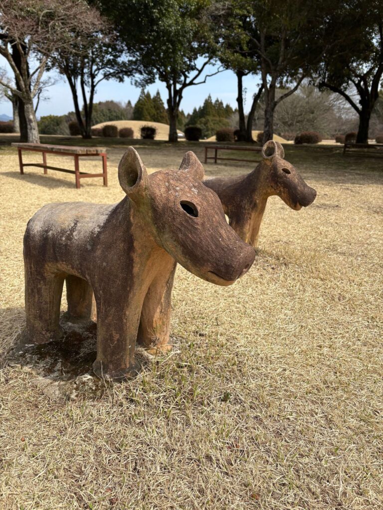 装飾古墳館前にある「はにわの動物園」には、色々な動物埴輪のレプリカがいます。