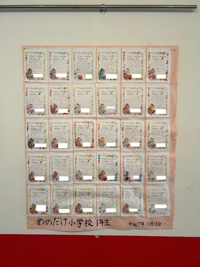 2025.12.02 めのだけ小学校1年生の皆さんからお礼の手紙をいただきました めのだけ小学校1年生の皆さんが当館で「どんぐり拾い」、館内見学、缶バッジづくりをされ、お礼の手紙をいただきました。 一人一人の温かいメッセージがとても嬉しく、職員皆で読ませていただきました。お手紙は体験棟の廊下に掲示しています。 めのだけ小学校1年生の皆さん、ありがとうございました。 装飾古墳館では小学校、中学校、高校、大学等での館内外見学、勾玉づくり・缶バッジづくり等の体験メニューも準備しております。お気軽にお問い合わせください。 この記事をシェアする