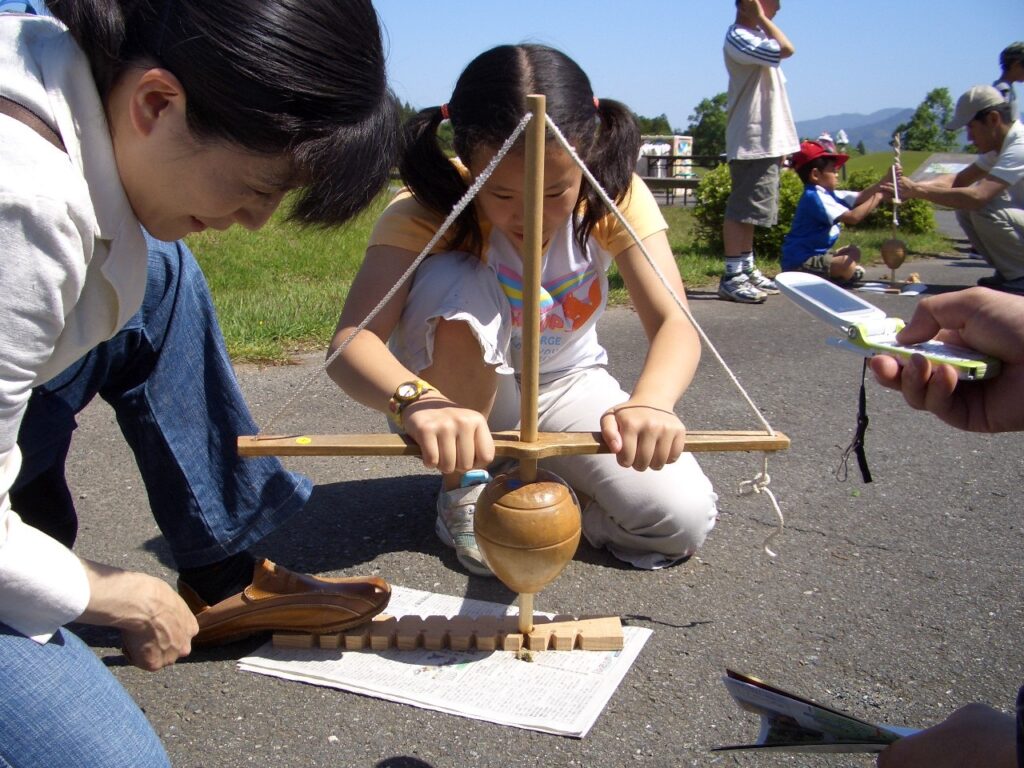 当館の古代火おこしは、古代の火おこし具「まいぎり」を使います。ちょっとコツが必要ですが、学芸員が丁寧に指導しますのでご安心ください。
