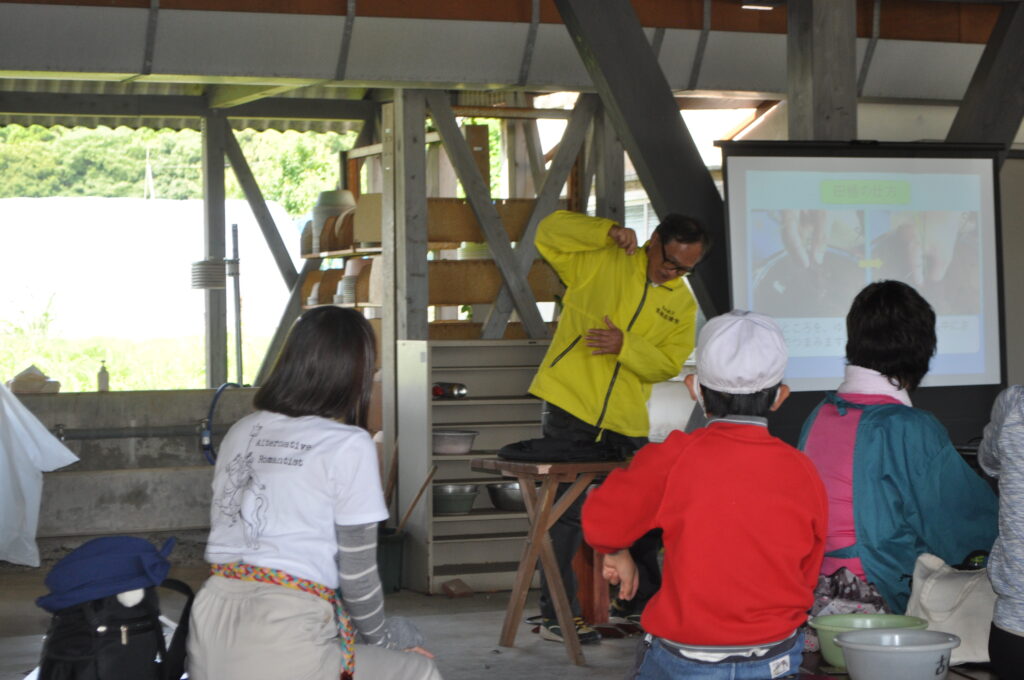 講演や解説にとどまらず、体験教室でも多くのお客様に本物の体験をしてもらおうと、日々、一生懸命、取り組んでいますよ。写真は赤米体験教室での「熱い」説明の様子です。身振りにも、思わず力が入ります。