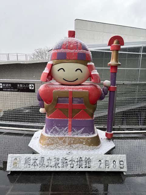 2026.02.08 装飾古墳館から雪景色をお届けします 2月8日(日)、珍しく雪が舞う装飾古墳館から雪景色をお届けします。 こだいくん1号「こんなに雪が積もるのは久しぶり。中庭の石棺も真っ白だよ。」 こだいくん2号「雪景色の岩原古墳群もイイ感じ!普段は登ることができる岩原双子塚古墳だけど、今日は見るだけにしとこうかな。」 寒原古墳と馬不向古墳も薄っすらと雪化粧です。 古墳館周りも雪が積もっています。 番外編:屋外の説明版にはツララが…今日は冷え込んでます。 この記事をシェアする