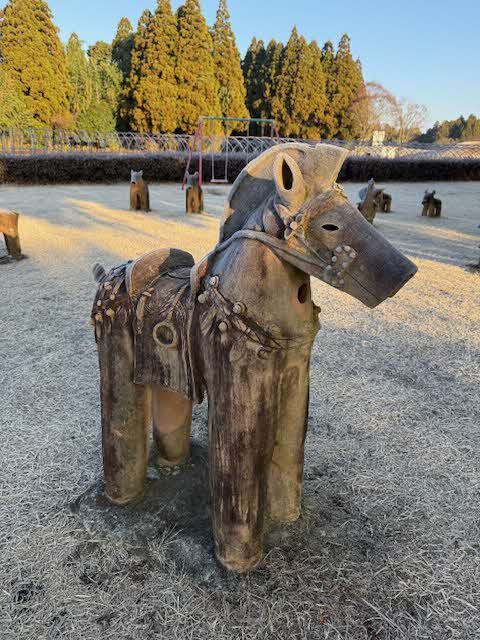 令和8年(2026年)は午(うま)年ですね。午年にちなんで、古墳館前にある「はにわの動物園」の馬の埴輪(レプリカ)をご紹介します。